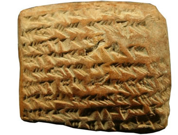 O texto pertence a uma colecção de milhares de tábuas de argila com escrita cuneiforme, encontradas em escavações no Iraque durante o século XIX.