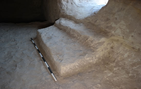 Os peritos da Universidade de Lund também encontraram uma pequena estrutura esculpida na rocha, constituída por duas salas em bom estado e de uma entrada decorada com um disco solar com asas.