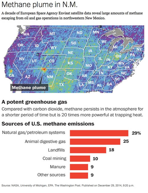 A acumulação de metano não é um problema novo, mas algo que parece ter piorado a partir da perfuração hidráulica do solo (ou fracking) e outras operações intensas de extração de combustíveis fósseis que continuam aumentando no sudoeste do país. A última análise da NASA sobre o fenômeno descobriu que a nuvem possui aproximadamente ''uma extensão de 400 quiômetros quadrados.'' Frankenberg apontou que esta estimativa foi feita antes do aumento mais recente da extração de gás e petróleo no sudeste americano.