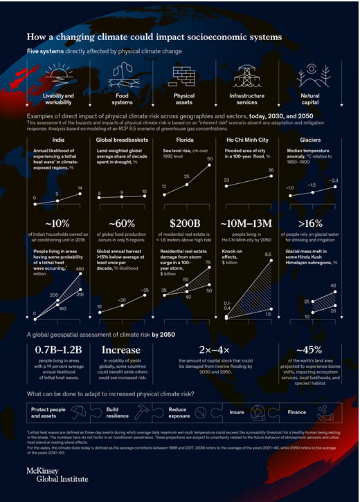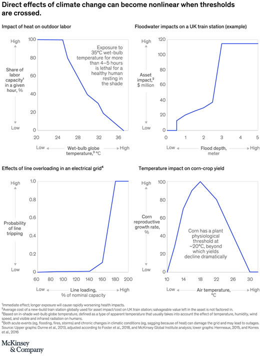 Essa não é uma conclusão a que chegamos levemente. No McKinsey Global Institute, passamos um ano avaliando os possíveis impactos socioeconómicos das mudanças climáticas nas próximas três décadas. O que descobrimos é que esses efeitos já existem e estão aumentando, geralmente de maneiras não lineares.