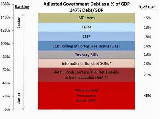 Uma avaliação realista e atualizada (com a inclusão de dívida relativa a empresas públicas, responsabilidades no âmbito de PPP e outros) da dívida pública e da sua composição é a que consta no gráfico seguinte.