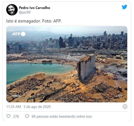 A capital libanesa acordou, esta quarta-feira, em choque, abalada pelas explosões, com uma potência registada pelos sensores do Instituto Geofísico Americano como um terramoto de magnitude 3.3.