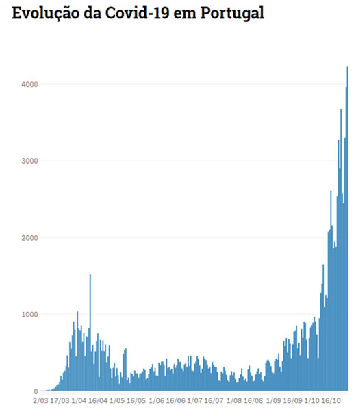 Portugal regista esta quarta-feira um novo máximo diário de casos de covid-19, num total de 3.960, e 24 mortes, avança a Direção-Geral da Saúde (DGS).