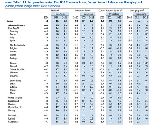 O FMI refere que "países europeus, como por exemplo Chipre, Itália, Malta, Portugal e Espanha), conseguiram salvar parte da época turística do verão ao desconfinarem em meados de 2020".