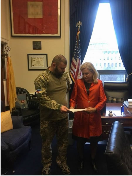 Mamulashvili recebido pela congressita Carolyn Maloney, em Março de 2018 // Facebook / The Grayzone