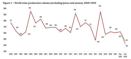 Na temporada de 2022-23, a Austrália produziu a menor quantidade de vinho dos últimos 15 anos. Ainda assim, enfrenta atualmente excesso de produção. Mas não é preciso ir à Austrália para se verificar esta situação. A nível mundial, segundo dados da Organização Internacional de Vinho e Vinha, em 2023 a produção mundial teve os menores valores de há 60 anos, desde 1961, e mesmo assim a oferta continua a ser maior do que a procura. O consumo global está atrás da produção desde pelo menos 1995, segundo a Bloomberg.