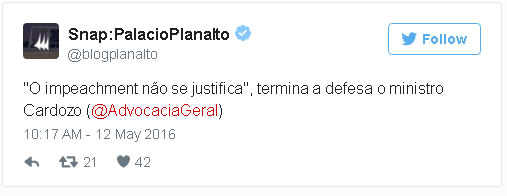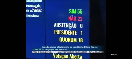 | Senado vota sim. Dilma afastada da presidência do Brasil