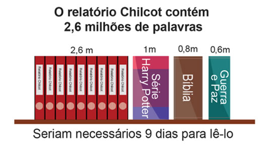 O chamado relatório Chilcot - que leva o nome do chefe da investigação, John Chilcot - levou sete anos para ser concluído e contém duras críticas ao então primeiro-ministro, Tony Blair, que procurava convencer o público britânico de que Saddam Hussein representava uma ameaça imediata ao Reino Unido, por conta de seu suposto arsenal de armas de destruição em massa.