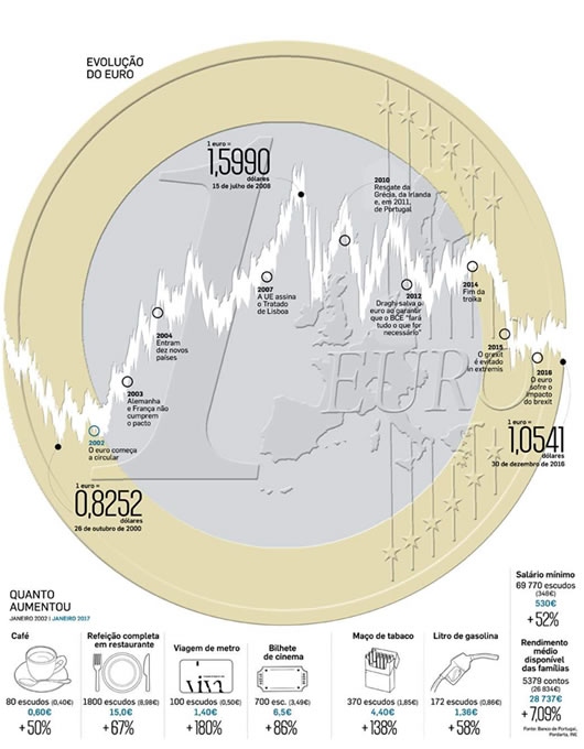 Um café custava 80 escudos e uma sandes pouco mais de cem. Para almoçar fora eram precisos quase dois contos e para ir ao cinema uma nota de 500 não era suficiente. Até que a 1 de janeiro de 2002 o dinheiro mudou de nome e de valor e uma ida ao supermercado passou a implicar muitas contas de cabeça.