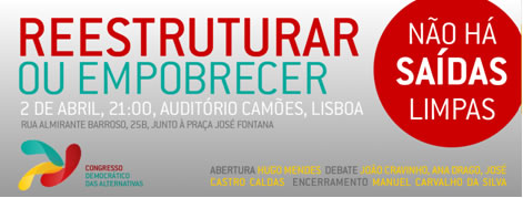 É hoje claro que a obstinação em pagar a dívida nos termos actualmente previstos – de juros, prazos e montantes – conduziria à destruição dos serviços públicos e dos direitos sociais e laborais em Portugal. Neste debate pretende-se fazer o balanço de três anos de intervenção da troika em Portugal e perspectivar o período pós-troika em termos políticos, económicos e sociais, discutindo as alternativas à estratégia do governo e da troika.
