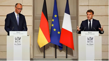 Presidente francês e chanceler alemão apresentam medidas conjuntas para segurança europeia, comércio internacional e resposta a crises globais. Friedrich Merz deverá visitar a Ucrânia "nas próximas semanas".