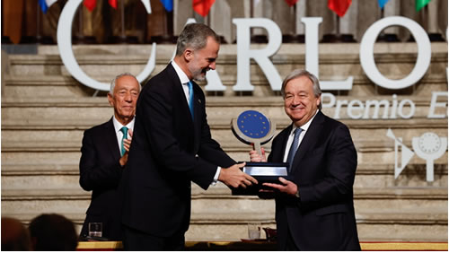 No Dia da Europa, o secretário-geral das Nações Unidas recebeu, em Espanha, o prémio europeu Carlos V, manifestando-se "sinceramente emocionado" com a "honra" que lhe foi atribuída,