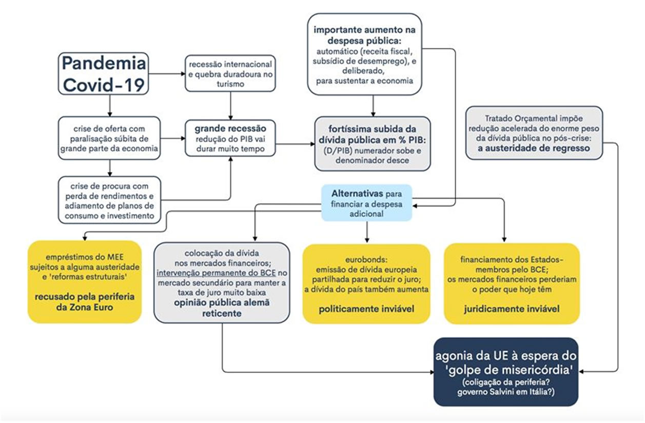 No fim de contas, toda a periferia sabe que a sua dívida pública vai disparar, e sabe que a 'austeridade fofinha' imposta pelo Tratado Orçamental, austeridade que reduziu dramaticamente o investimento público no SNS e no resto do país, vai dar lugar a uma austeridade insuportável porque vamos ter um nível de dívida superior ao do pico da crise financeira, mas agora com o esvaziamento das bolhas do turismo e do imobiliário.