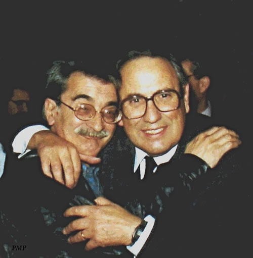 "À esquerda, o pintor Artur Bual e à direita, Augusto Cabrita".