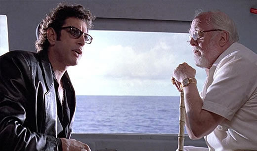 A escolha das roupas dos personagens é algo que os produtores levam muito a sério, e não é a toa que durante o filme inteiro, os personagens Ian Malcolm (Jeff Goldblum) e John Hammond (Richard Attenborough) estão sempre de cores opostas, um de preto e outro de branco. As roupas deixavam bem claro a divergência de ideais das duas figuras.