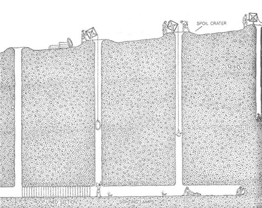O túnel tinha uma tubagem e uma grande inclinação para transportar a água para o local desejado. Quanto maior o Qanat, menor era o seu declive.