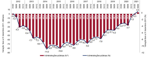 Variação acumulada do emprego nas administrações públicas.