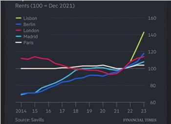 Com uma subida de 13,9% no primeiro semestre deste ano e um aumento de 32,7% em junho face ao mesmo mês de 2022, entre as 30 cidades analisadas, Lisboa é a capital mundial onde se registou a maior subida de rendas.